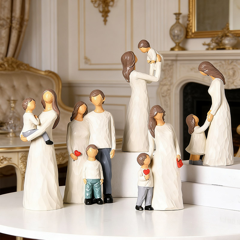Chaque scène de la sculpture représente les moments les plus ordinaires et les plus heureux de la vie : la tendresse d’une mère serrant son bébé dans ses bras, la stabilité d’une famille unie, la joie de soulever un enfant au-dessus de sa tête, la douce complicité d’une promenade main dans la main avec une petite fille… La texture brute de l’argile évoque ces instants imparfaits mais chaleureux de l’existence. Sans aucune sculpture délibérée, elle dépeint avec justesse le lien qui unit les membres d’une famille.