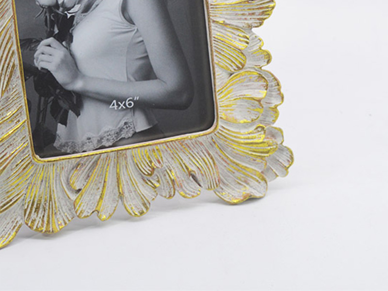Technique de dorure à la feuille antique : La couleur de base est un blanc mat antique. Les bords des pétales sont dorés à la feuille à la main pour sublimer l’aspect et créer une texture rétro et luxueuse. Le cadre photo devient ainsi une véritable œuvre d’art.