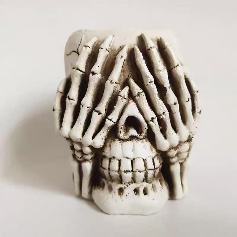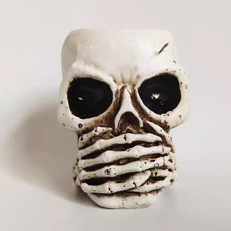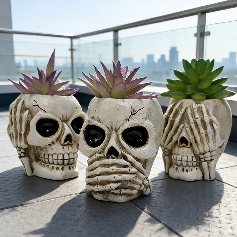 Fabrication artisanale en résine de haute qualité : orné d’un décor en os raffiné sur le pot de fleurs, ce pot en forme de crâne est robuste, stable et durable. Sa surface blanche lisse lui confère une touche de luxe.