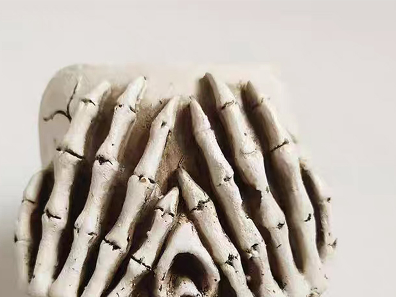Détails soignés : Le crâne est sculpté avec une méticulosité extrême, avec des lignes douces et un aspect très artistique.