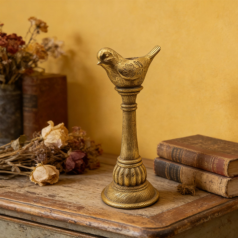Détails de l'ouverture : L'abdomen de l'oiseau est gravé de motifs floraux aux lignes fines, ajoutant une touche décorative à la simplicité du design. Le corps de la colonne présente des motifs texturés verticaux, et les motifs en relief des pétales sur la base sont nets, rappelant les ornements sculptés et les techniques de vieillissement du mobilier américain. Les trous de vidange du chandelier sont dissimulés derrière le dos de l'oiseau, alliant praticité et harmonie du design.