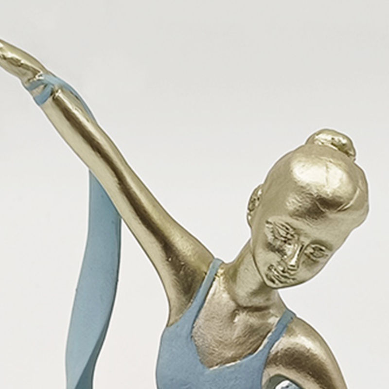 ♥Résine synthétique polymère ♥La partie cutanée de la figurine est recouverte de peinture dorée champagne. ♥La robe de danse est peinte avec des nuances de bleu changeantes. |