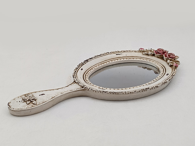 Matériaux et savoir-faire : Le corps principal du miroir est en résine. Sa surface est recouverte d'une finition blanche vieillie, et ses bords présentent un léger biseau brun, créant une texture rétro et mouchetée.