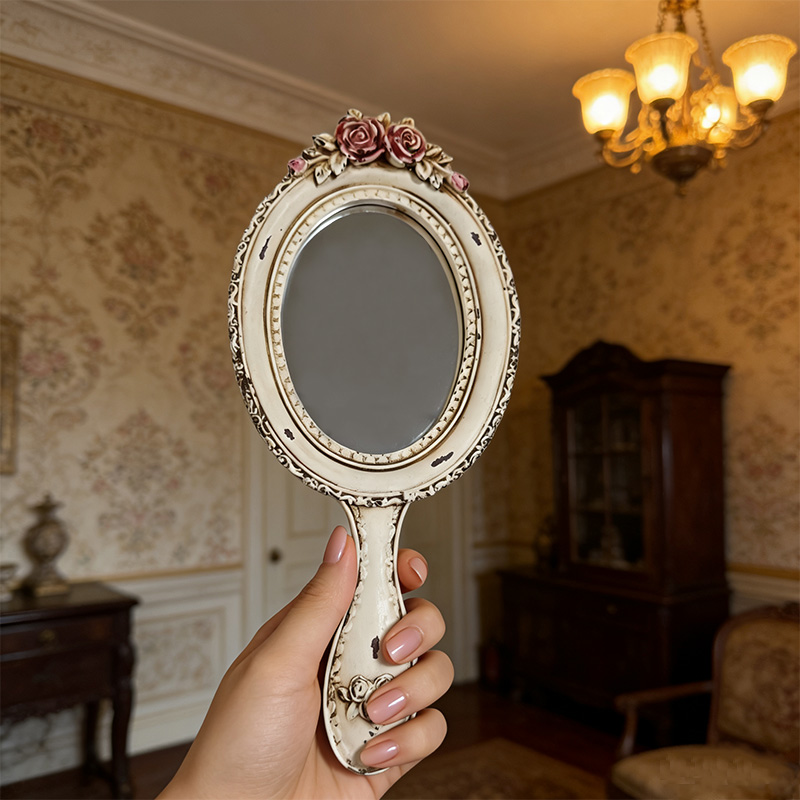Utilisation polyvalente : Miroir de poche vintage. Idéal pour se maquiller ou comme objet de décoration, ce miroir vintage convient à différents contextes.