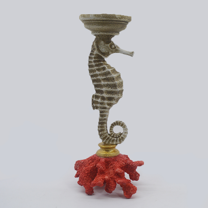 - La jonction entre l'hippocampe et le socle en corail est ornée d'un anneau à la finition métallique dorée, d'une facture exquise, servant de transition visuelle et d'embellissement.