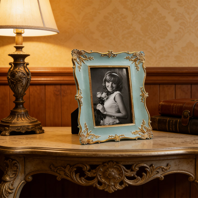 Nous fournissons cadres photo en polyrésine de haute qualité Avec son design baroque vintage, le modèle 1767 arbore une finition bleu antique et or peinte à la main. Il est idéal pour les détaillants de décoration intérieure, les boutiques de cadeaux et les fournisseurs d'articles de mariage. Sa construction en résine durable et sa façade en verre véritable lui confèrent une valeur perçue élevée auprès de vos clients.