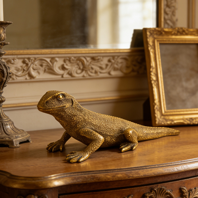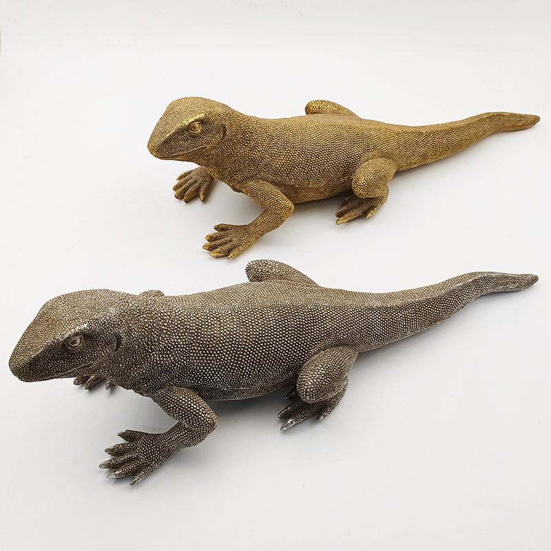 Description: | ♥Figurine rétro en résine dorée d'un dragon de Komodo ♥ Éclaboussures dues aux intempéries, motifs d'écailles de dragon de Komodo, nervures des membres et posture corporelle ♥Résine haute densité respectueuse de l'environnement |