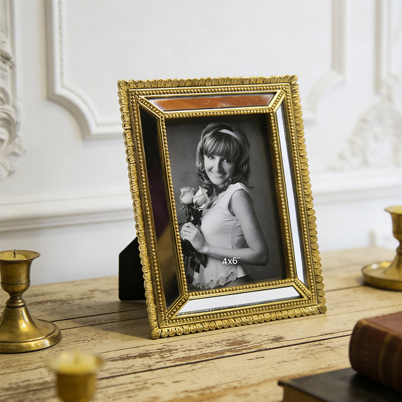 Caractéristiques du cadre : largeur 2,5 cm, épaisseur 1,3 cm. Le motif de perles est en relief d’environ 0,2 cm. Le volume est modéré et harmonieux.